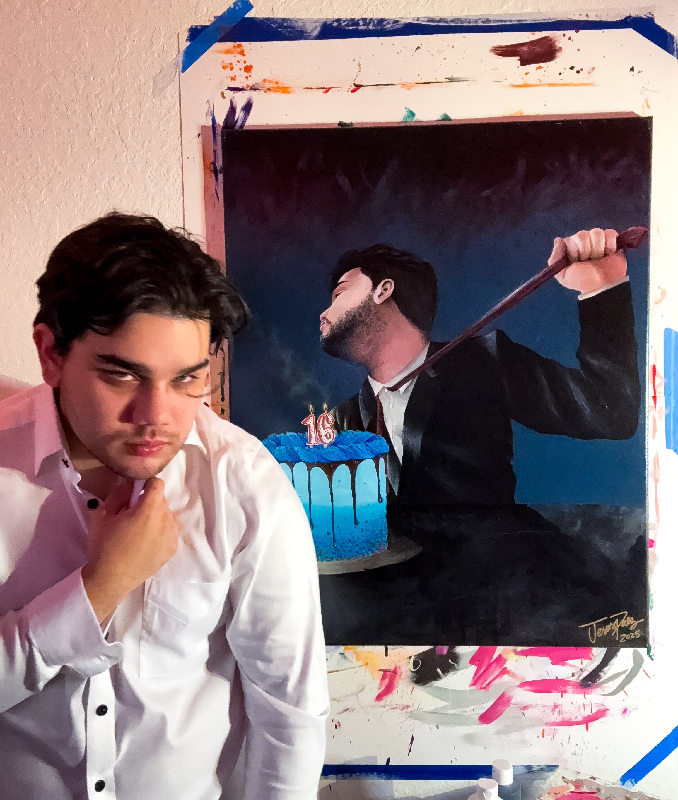 My name is Jesus Paez, a local artist who has been creating since the age of approximately six or seven, and Im currently 22. I am a visual artist driven by emotion, memory, and the fragments that shape who we are. My work blends surrealism with pieces of reality, this time exploring the beauty and chaos within the human experience. Through symbolic imagery and expressive brushwork, I turn personal reflections into stories that others can see themselves in. Every painting is a way for me to understand the world — and to invite others to do the same.